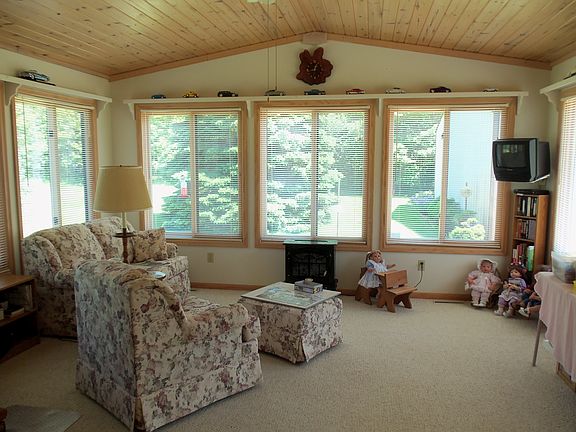 Beautiful home located on 2.5+ acres with gorgeous views of Perch Lake, spacious floor plan, main floor laundry, custom cabinetry, great sunroom, family room with fireplace, full basement with hobby room and storage two pole buildings 28x32 and 24x40