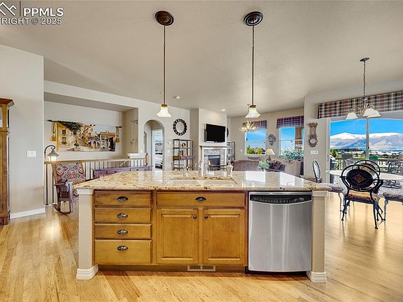 STUNNING MULTI-MILLION-DOLLAR VIEWS for Less! Experience luxury living in the exclusive Flying Horse Golf Community, with breathtaking views of Pikes Peak and the Front Range from your large covered deck! This meticulously maintained home, situated on a prime corner lot, offers maintenance-free living at its finest. Key Features: PANORAMIC VIEWS from a refurbished Trex Deck (2023) with gas grill hookup and remote sunshade. MAIN LEVEL PRIMARY SUITE with private deck access, custom walk-in closet, and granite dual vanities. ELEGANT GOURMET KITCHEN with stainless steel appliances, granite countertops, large island with bar, and spacious walk-in pantry. EXPANSIVE LOWER LEVEL includes a handsome gas fireplace, stone surround, granite wet bar with dishwasher and wine rack, two additional bedrooms, a full bathroom, and a large unfinished storage room. IMPECCABLE WOOD FLOORING throughout the home, plus a no-slip coated covered front porch and garage floor. MODERN AMENITIES like upgraded lighting, new water heater (2023), radon mitigation system (2021), and tile roof (2015). ASSOCIATION SERVICES include landscaping, snow removal, trash, and recycling. The FLYING HORSE COMMUNITY offers unparalleled amenities, including the private Tom Weiskopf Golf Course, dining options, wine lockers, and guest bungalows. Stay fit at the athletic club with a fitness center, lap pool, water park, tennis courts, and elite spa. Enjoy miles of scenic trails, parks, and top-rated District 20 schools. This is one of the few properties left which offer views onto the future site of the Colorado Springs Temple and gardens of The Church of Jesus Christ of Latter-day Saints! Don’t miss out on this incredible opportunity. Schedule a showing today before this one-of-a-kind residence is gone!