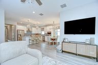 Large center islandCovered lanaiGleaming quartz countertopsOversized laundry roomPrivate wooded backdropGourmet kitchenExpansive open-concept living space