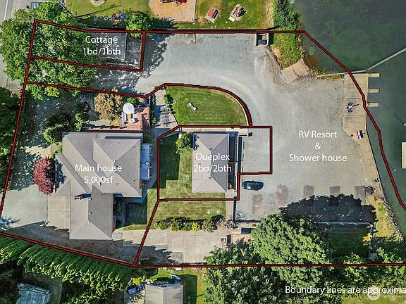Incredible opportunity on Clear Lake! 4 separate parcels offer endless possibilities, whether you’re looking to host large gatherings, create a recreational retreat, or take advantage of its income potential. 4 parcels are as follows: main house (5,047 SF with 3 bdrms/1.75 bths), duplex (each 1 bd/.75 bth), guest cottage (459 SF with 1 bd/.75 bth) & waterfront lot. Originally built in 1994, all structures have been thoughtfully updated. Enjoy lake life just steps away, plus boat slips & boat launch. With 9 RV pads & guest amenities including showers, laundry & restrooms, this property is set up for hosting all visitors. All of this in a peaceful setting, just 5 mins to Mount Vernon & I-5. It’s recreation, entertainment & income all in one!