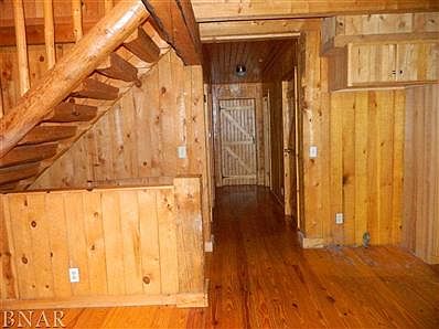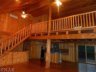 Beautiful 1.5 story log home on 14.99 secluded acres with 1 acre stocked pond. Dock with diving board & rope swing. 8 acres fenced for horses with shelter & automatic waterer Open floor plan with slider leading to deck that spans the back of the home. 24 x 24 Cleary Building with concrete floor & ecectric , Pella Windows & Doors. Covered front porch. Walk-out lower level with family room, rec room, bedroom and full bath. Large master suite with loft. Acreage is part timber with trails and creek!