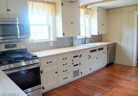 Motivated Sellers! Step into the past with this remarkable Century home on 4 acres, in Springfield School District. Built in 1867, with many porches, you enter this home through a charming foyer. Large Living Room has an 8 ft Open Hearth wood-burning fireplace. This leads to lovely, cozy office, and right off the office is a re-done 1/2 bath. Kitchen has been redone, with painted cupboards, butcher block counters, tin back splash, and newer stainless appliances. Refinished original oak plank floors lead into the formal dining room. Hardwood floors throughout the home. Upstairs includes 4 bedrooms and redone full bathroom. House comes with a bank barn, perfect for 4H students and family projects. Also, includes a new 22x16 wood deck, and 1/2 cement basketball court with lights. Exterior lights on house, deck and barn. Property includes cherry, apple, and perar trees. There are several lilac bushes. Barn roof replaced 2010.
