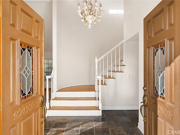 Interior Highlights: A welcoming foyer with a chandelier and slate flooring leads to a grand staircase.
