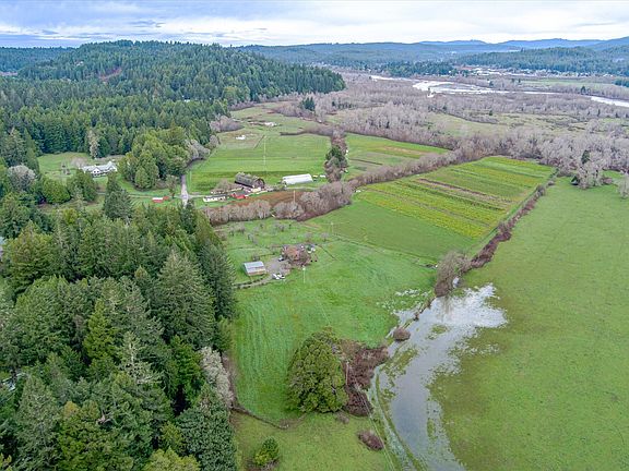 If you are captivated by the allure of a bygone era and wish to experience the beauty and potential of this iconic ranch, we invite you to come and take a look. Discover the possibilities and envision the next stewardship of this timeless and fertile Humboldt County farm. With Class 1 & 2 soils, there are roughly 45 acres classified to support moderate to intensive farming. There are also riparian water rights to Kelly Creek and three phase power to the ranch. About 40 acres are currently leased to an organic farmer, primarily dry farming. Good producing Ag well.