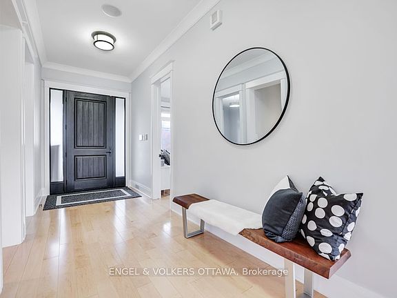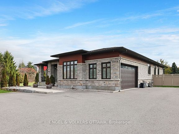 Live your Luxury in Manotick! Crafted by Woodstruct Construction in 2018, this custom bungalow harmonizes quality design, refined finishes and a perfected layout for daily living and sophisticated entertaining. Expect to be wowed by the exquisite detail and workmanship - 10 ft ceilings, natural maple & walnut accents, stunning hardwood flooring and the expansive south-facing windows where the sunlight pours in throughout the day. A showpiece kitchen with quartz counters, a statement island, walk-in pantry, and Bosch suite (gas cooktop, oven, convection oven/microwave, dishwasher) finished with USB outlets and reverse-osmosis water. Relax in the serene primary retreat with dual walk-ins and a spa-level 5-piece ensuite. Four of the five bedrooms enjoy private ensuites; a fifth bedroom flexes as an office, den or organized storage room. Downstairs, a thoughtfully finished, apartment-style level-also accessible from the insulated two-car garage supports multi-generational living with a gym, living and dining areas, office, theatre room and a wet bar rough-in.The backyard living space offers a low-maintenance irrigated yard. Perfect for entertaining in the large gazebo, the oversized solarium, or hot tub; the fenced lot and trees allow for privacy with minimal neighbouring presence. ENERGY STAR heating/cooling/water with Wi-Fi controls, triple-pane front windows, manifold plumbing with individual shut-offs, UV water treatment with softener/iron, high-end two-bed septic, generator with automatic transfer switch, EV outlet, built-in speakers and digital alarm. Eight-foot solid-core Cambridge doors, crown/baseboard and window trim. Minutes to Manotick Village and Hwy 416 with an easy commute to downtown-perfect for the buyer who values craftsmanship, luxury, and design.