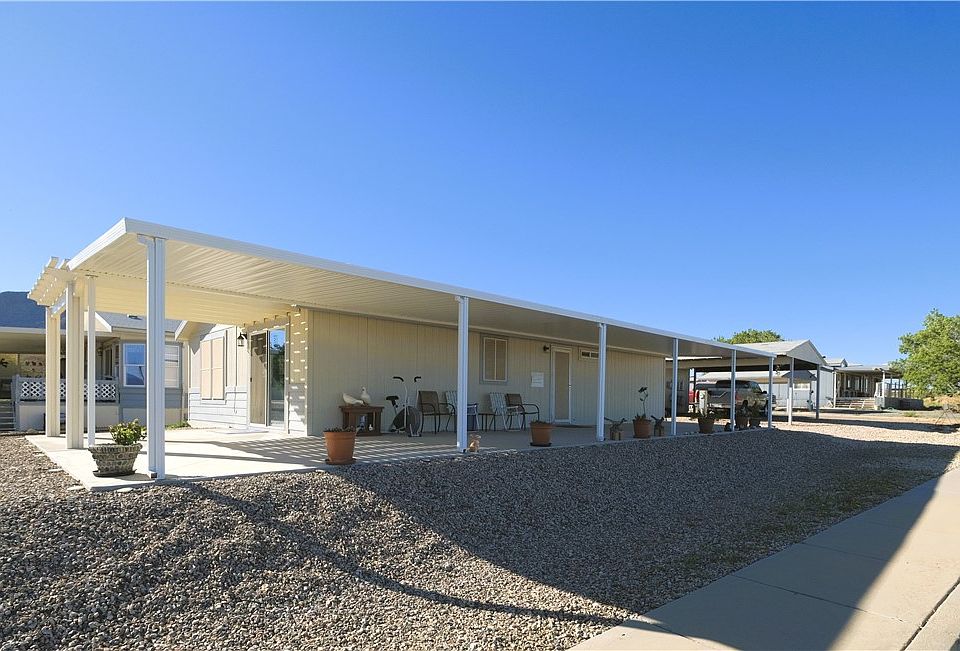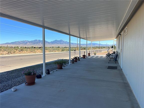 Welcome to this super-clean and bright two bedroom, two bath home located in Kingman Ranch Mobile Home Park! Ground-set for easy access and level entry, this end unit has fantastic views of the Hualapai and Peacock Mountains from two extensive covered concrete patios, extending your living space to the outside. The shed has a full garage roll-up door and electricity for a great workshop. A double carport provides shade for your vehicles. The landscaping has been recently re-graveled, making for easy maintenance. The park itself has a community center with activities and a pool. Water, Sewer, and Trash are included in the space rent, currently just over $500/month.