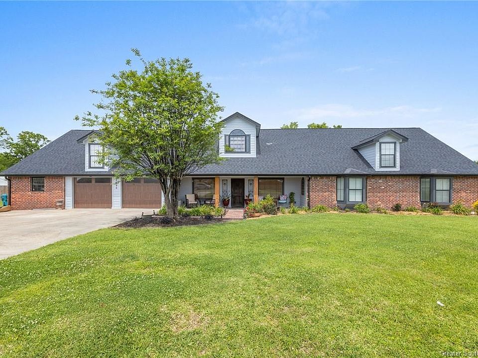 Come tour this stunning, renovated home nestled on a fenced-in, 2 acre lot in Moss Bluff. Boasting approximately 3800 square feet, this residence is designed for both entertainment and relaxation. As you step inside, you'll be greeted by soaring cathedral ceilings and an inviting open floor plan with numerous updates and renovations. This exquisite home features 5 bedrooms, 4 bathrooms, multiple living areas, a charming sunroom with tons of natural light, and a host of other amenities. There is a nice gas burning fireplace in the living room to enjoy. The kitchen is a chef's delight, complete with a natural gas cooktop and plenty of cabinet storage. The primary suite is very spacious and features nice sized closets, a tiled walk-in shower, a rejuvenating soaking bathtub, dual vanities, and ample room to unwind. There are multiple bedrooms downstairs. Upstairs, you'll find 2 bedrooms with ensuite bathrooms attached. Outside, there is patio featuring a custom-built outdoor kitchen and fireplace, perfect for barbecuing and entertaining. The massive backyard features a metal storage building and a complete privacy fence, offering tranquility and seclusion. Conveniently, this property includes a 2-car garage with an additional bay, ideal for a workshop or extra storage. Situated in Flood Zone X and free from HOA restrictions, this home offers both peace of mind and freedom. Don't miss the opportunity to own a home that truly has it all. Schedule your private tour today and envision the lifestyle awaiting you in this exceptional residence!