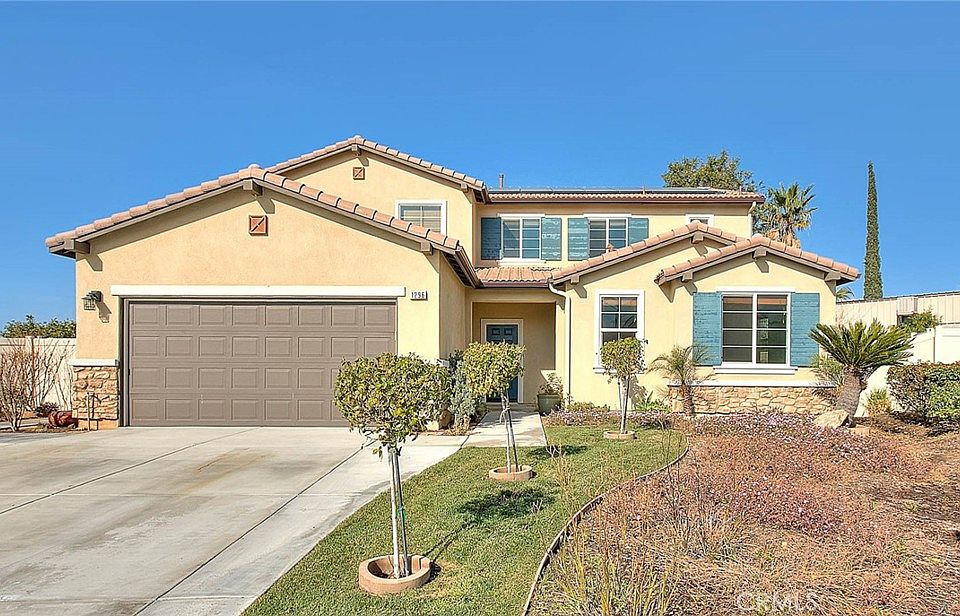 This beautiful residence is situated in a tranquil community in Mentone, offering stunning mountain vistas. It boasts 4 bedrooms and 3.5 bathrooms, encompassing 3,206 square feet of living space on a generous 10,667 square foot lot. The property includes numerous upgrades. There is a separate in-law or maid's quarters featuring its own entrance, living area, bedroom with a walk-in closet, bathroom with a walk-in shower, kitchenette, and laundry room closet. This area is ideal for guests or as a potential source of income. The main house showcases a bright and open floor plan, with a spacious kitchen that includes an oversized island with granite countertops, connecting to a large great room. Additional features include a fully paid solar system, a tankless water heater, luxury vinyl plank flooring on the lower level, and carpeting on the upper level. The indoor laundry is conveniently located upstairs, along with ample storage options throughout the home. This model also features a sizable loft upstairs, which can serve as a game room, office, or den. The expansive primary bedroom includes a large walk-in closet, while the primary bathroom is equipped with a sizable bathtub and a separate shower. The other two bedrooms are also generously sized, each with large walk-in closets. The finished two-car garage offers one side that is extra deep. The beautifully landscaped backyard includes a large, oversized shed for ample storage. A covered patio with stamped concrete provides plenty of space for relaxation and hosting wonderful gatherings. The property enjoys easy access to freeways, shopping, and dining. A visit is essential to fully appreciate this remarkable home.