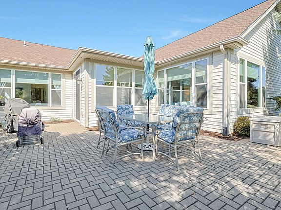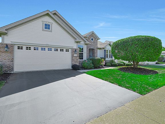 Sophisticated Del Webb built Traverse Bay model in sought after Sun City Huntley with 3 bedrooms, 2 baths, sunroom and 2.5 car garage with attic storage. This stunning home offers an expansive 2,238 sf of beautifully designed space. Gorgeous wood floors greet you as you enter the formal living/dining rooms. The wood floors extend into the inviting family room, with cozy fireplace and beautiful built-in cabinets. The floors continue into the kitchen with a great breakfast bar, white cabinets, granite countertops and upgraded appliances. Spacious primary bedroom with tray ceiling, his and hers walk-in closets, luxury ensuite with jacuzzi tub, separate shower, and dual vanities provides ample space for comfort and relaxation. Two generous secondary bedrooms with full 2nd bath nearby. Relax and enjoy the lovely fall colors from your light and bright sunroom leading out to the lush and private backyard with a beautiful brick paver patio perfect for entertaining. Roof replaced around 2019. Come and enjoy the amazing lifestyle Sun City has to offer!