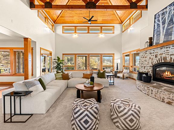 Experience the exceptional quality of this Craftsman retreat, perfectly positioned to capture expansive Golf Course Views from multiple front-facing windows. From the Slate Walk & Entryway to the Cultured Stone Accents, every detail speaks to custom luxury & enduring design. The home's striking architecture is immediately apparent with its Exposed Timber Frame Wood Ceiling in the living room and the Custom Craftsman Trim adorning all doors and Pella windows throughout the home. Rich, continuous Hardwood floors flow through the Living Room, Kitchen, and Dining Room complementing the Custom Cherrywood Cabinets with pull-outs. The kitchen is a gourmet's delight, featuring granite & butcher block island/bar. Thermador 6 burner gas stovetop, convection Double Oven. Convenience is integrated with a refrigerator & trash compactor.The main level offers a sophisticated sanctuary. The Living Room features a soaring Cultured Stone Raised Gas Fireplace adjacent to the wall of windows offering stunning golf course vistas and glass doors opening onto the huge covered decking. The Master Suite is an oasis with a cozy Gas Fireplace Sitting Area, a Tray Ceiling & outdoor access to the covered deck. The recently Remodeled Bathroom defines luxury with a Free Standing Bathtub & a spacious Walk-in Shower & walk-in closet. For the professional, the private Office is a showpiece, featuring French Door Entry, Custom surround lighted built-in Cabinetry, a large window seat, and hardwood flooring. This home is equipped with extensive amenities for comfort and efficiency, including Propane HVAC with 2 thermostats, a Gas Water Heater , and a Tile Roof. The lower level provides a spacious Downstairs Living Room and a dedicated Wine/Cold Pantry Room. Exterior living is a dream with an Exotic Wood Covered Decking, which is partial wrap-around, & the rest is surrounded by Pavers for backyard landscaping. The 3-car garage includes a modern EV Charger metal work cabinets. Every space is accented with details like Transom Windows and high-end fixtures like a Heated Towel Rack in the downstairs bathroom. This is more than a home; it is a masterpiece of contemporary Craftsman design, offering unparalleled privacy, luxury, and the serenity of golf course living. Don't just admire the viewlive it on this .53 acre parcel. Darkhorse, exceptional living, elevated.