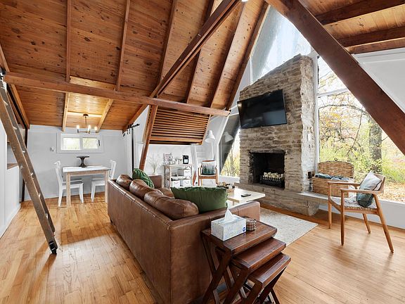 Stunning A-frame cabin retreat nestled on a hill overlooking the private community lake in the highly desirable Holiday Haven. Enjoy scenic lake views from the living room's wall of windows, as well as from the deck and hot tub. This charming and cozy home features 3 bedrooms, a fun loft area, and an updated bathroom. While this location is in a private neighborhood off the beaten path, it's just a short drive to all of the Hocking Hills attractions. Property has a new furnace, new hot tub, and a new roof will be added before closing. Currently operating as a short-term rental and will be sold fully furnished.