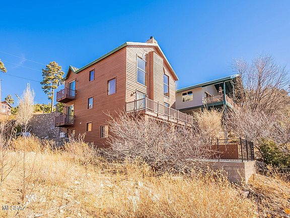 Charming large cabin located on Mount Lemmon has year round access to enjoy all the seasons! This 2,378 sqft 4 bedroom 3 bath cabin being sold furnished, sits on a 5,193 sqft lot. Inside features beautiful cherry wood floors, travertine ceramic and slate tile and tongue and groove walls and ceilings. Large mud room with a washer, dryer and trash compactor. Great for storing all your hiking boots and ski gear! Gourmet kitchen with stainless steel appliances and beautiful granite counter tops. Cozy fireplace in the spacious great room to keep you warm in the winter months. Bedroom on main floor with its own private deck to enjoy the early morning views. 3/4 bath on main floor with a walk-in in shower with a built in bench and beautiful granite counter tops. Upstairs has 2 bedrooms that have their own private decks as well and 3/4 bathroom with a walk in shower. Downstairs basement leads to two rooms, one with a full bath and storage closet. The other has two storage closets and a large concrete patio to enjoy the lovely mountain views. This beautifully designed spacious cabin is a must see, don't miss out on your dream cabin!