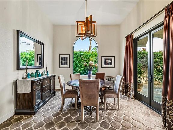 Welcome to the coveted enclave of The Colony at El Mirador. This gated retreat blends Santa Barbara coastal architecture with contemporary style and was reimagined from top to bottom -- new windows, a stunning chef's kitchen, a luxurious primary suite, and pool and spa framed with Italian quartz and Spanish tile. Enter through a serene courtyard dotted with mature olive trees, an Indian granite walkway, vintage fountains, and multiple alfresco dining spaces, including an outdoor kitchen designed for the indoor-outdoor chef. Inside, hand-painted tiles, wood flooring, soaring ceilings, and curated color palettes create effortless warmth. The living room captures dramatic mountain views, while a cozy family room offers a second fireplace. The kitchen is a showstopper with Thermador appliances, custom cabinetry and Quartzite and Dekton counters. The elegant dining room and inviting wet bar make entertaining a joy. The cerulean office overlooks the pool and you are serenaded by one of the many fountains on the property. The primary suite is a sanctuary with smooth plaster walls, a fireplace, Italian marble finishes, imported bathtub, and a custom wardrobe room. Additional highlights include two outdoor dining areas, owned solar, and a temperature-controlled 3-car garage. Experience the quality and craftsmanship of this exceptional home.