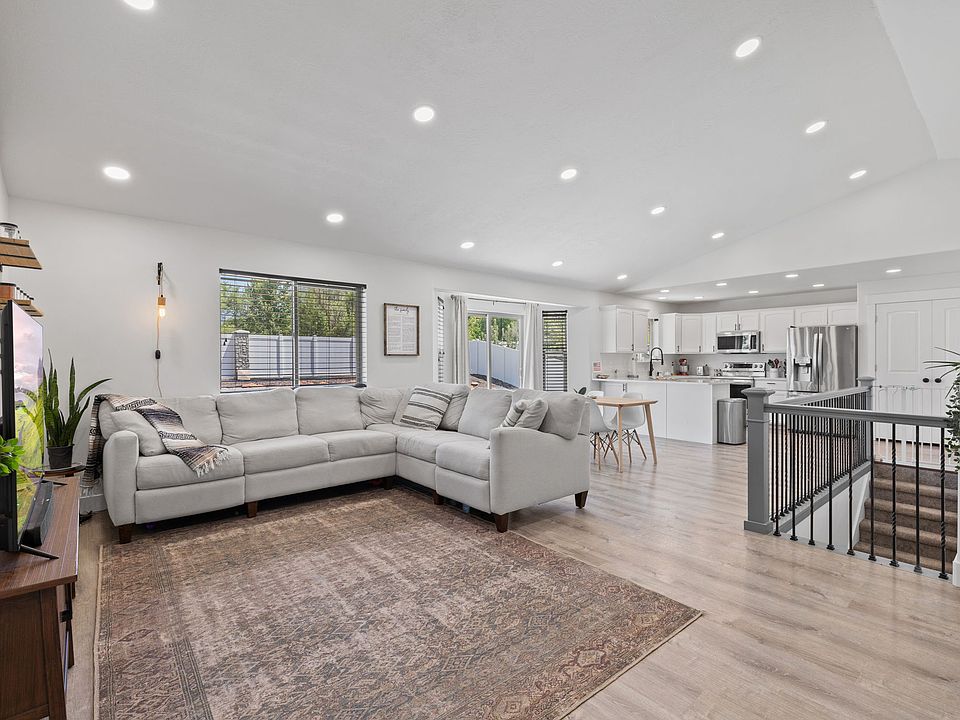 Refreshed 3-bed, 2-bath home in a great location. There is a basement apartment with a separate entrance that is currently rented. This listing is for the upstairs and part of the downstairs. This unit is separated from the downstairs apartment via a locked door. Upstairs you have 3 bedrooms and 2 bathrooms, one of which is a master with an ensuite bathroom. The upstairs also has a door to the 2-car garage, a kitchen and a living room. This unit has an additional living room downstairs and a 4th room that has stall mats for gym equipment and the washer and dryer - it could be used as a 4th bedroom but it would be less comfortable due to the lack of carpet and having the laundry in there. The freeway entrance, Walmart, LDS Temple, and Payson's newest food options are all within seconds. Only a couple minutes away from the mouth of beautiful Payson Canyon/The Nebo Loop with lots of opportunity for recreation and enjoying the outdoors.