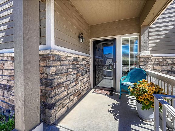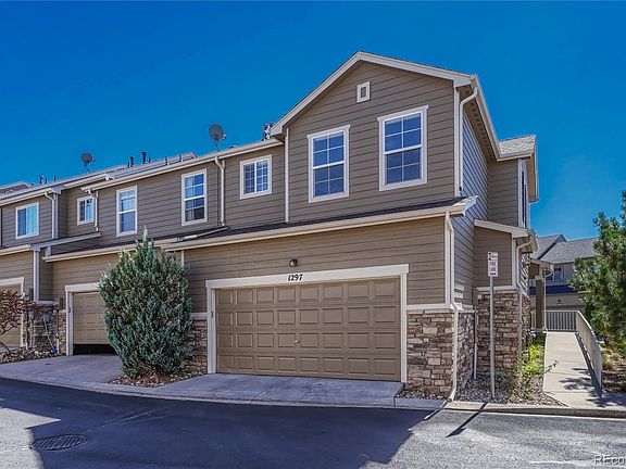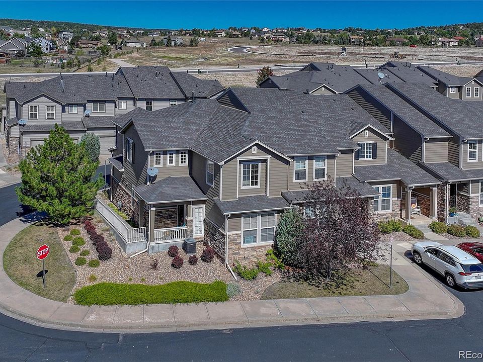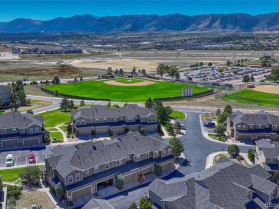 Hard to find move-in ready end-unit townhome! This beautifully maintained home offers gleaming wood floors throughout the main level and stairs, plus a spacious, sun-filled loft—ideal for a home office, gym, or additional living area. The open, airy floor plan features a bright, expansive kitchen with a breakfast bar, a cozy dining nook, and two luxurious master suites, each boasting its own ensuite bath with dual vanities and large walk-in closets. Stay cool with central air during warm summer days, and enjoy the convenience of a generous 2-car garage with built-in storage cabinets. Take in breathtaking mountain views and the sight of Air Force Academy flyovers right from your home! With easy access to I-25, you're perfectly situated for commuting to Denver, DIA, Colorado Springs, or Pueblo. Nearby, you'll find an abundance of shops, restaurants, and some of the area's top parks and trails. This home offers the perfect blend of comfort, convenience, and lifestyle!