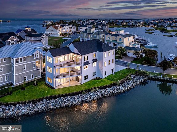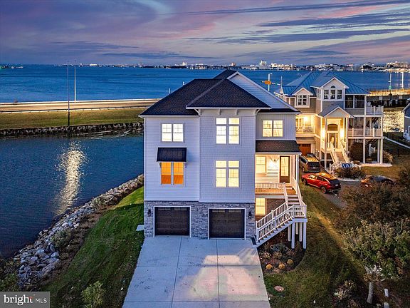 Stunning custom 5BR/5BA estate is located in the prestigious Estates at Inlet Isle Lane in West Ocean City. This custom home showcases exceptional craftsmanship, a unique architectural style, and an unbeatable waterfront location. With panoramic views of the marina, bay, canal and ocean, this property offers the perfect setting to enjoy endless sunrises and sunsets. Boating enthusiasts will appreciate the deep-water slip that accommodates up to a 42-foot boat, providing easy access to the ocean through the inlet. The home’s exterior is sleek and modern, featuring clean white lines, stone finishes, and striking black accents that complement its coastal setting. Upon entering the first floor, you’ll find a spacious recreation room and a full bathroom—ideal for entertaining guests or relaxing after a day on the water. An elevator or staircase leads to the second level, where a gourmet kitchen awaits. This chef’s kitchen includes high-end appliances, quartz countertops, a custom coffee bar, and ample cabinetry, all set against a backdrop of wall-to-wall windows offering breathtaking water views. The adjacent family room features soaring ceilings, a dramatic floor-to-ceiling stone fireplace, and cedar wood accents that draw your eye to the expansive windows overlooking the bay. This open and airy space is perfect for entertaining family and friends. Also on this level is a luxurious primary suite complete with a large walk-in closet with custom shelving, a spacious custom shower, and a beautiful soaking tub. A second bedroom and bathroom are also located on this floor. The third level offers even more space to relax and unwind with a second family room/lounge area featuring another coffee bar and panoramic water views. This floor includes a second primary suite with its own spa-like bathroom, plus two additional bedrooms that overlook the marina. Multiple decks on every level allow you to enjoy the fresh air and cool summer breezes from sunrise to sunset. The oversized garage provides plenty of space for large SUVs and all your beach gear, with potential to finish part of the space if needed. Located close to world-class marinas, golf courses, Assateague Island, the Ocean City Boardwalk, and some of the area’s best restaurants, this home offers the perfect blend of luxury, comfort, and coastal living. It’s a place where you and your loved ones can create memories that will last a lifetime.