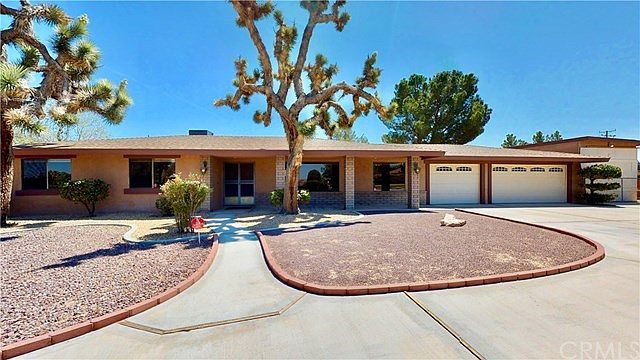 Immaculate turn key home in very desirable area of Apple Valley. Home has been appraised for 305k. This home is ready for a family to move in! Home features a 40 ft covered RV garage. Extra-large attached 3 car garage which will fit boat or full-size P/U truck. Large circular driveway, fenced 3/4 of an acre. New A/C and heating system, dual water heaters on each side of home. Home has new paint,carpet and padding with updated roof. Covered front porch and covered rear patio. Home is near award winning Sitting Bull Academy Elementary School. Outside of home has many mature Joshua trees and other mature trees. Raised garden bed area in rear of home. Large wood burning fireplace in family room. Oak trim throughout. Tile tubs and showers. Home is close to shopping and movie theatres. Don't miss out on this Apple Valley gem!
