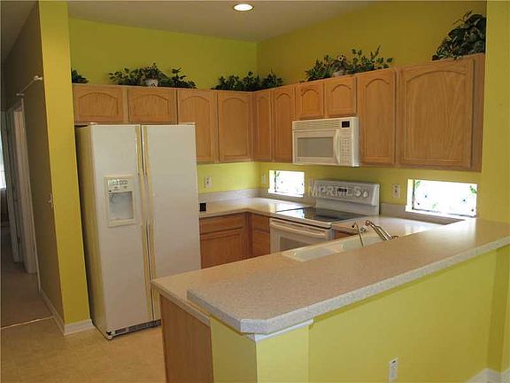 Great curb appeal. Designer driveway/walkway. Zoysia lawn. Screen door on entry door. Sliding garage screens with keyless entry. Move-in ready with soft designer colors throughout the home. Inside laundry. Split bedroom plan. Beveled Formica counters top in the kitchen with smooth top stove and side-by-side refrigerator. Recipe windows. Bay window in breakfast nook and master bedroom. Enclosed lanai with acrylic windows.