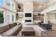 Gas fireplaceTwo-sided fireplaceStylish finishesLandscaped yardHeated saltwater poolContemporary chandeliersHome theater