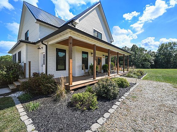 This stunning 4-bedroom, 3-bathroom custom farmhouse, built in 2020, offers the perfect blend of timeless charm and modern luxury. Thoughtfully designed with an ultra-open layout, the home features elegant arched doorways, built-in shelving, and beautiful finishes throughout. The heart of the home is the spacious kitchen, boasting marble countertops and plenty of room to gather. The main-floor primary suite includes a spa-like adjoining bath and a large walk-in closet. Enjoy peaceful country living from the inviting covered porches on both the front and back of the home perfect for morning coffee or sunset views. Outside, the property truly shines with an oversized detached garage, an animal barn, a chicken coop, and fully fenced pasture ideal for hobby farming or enjoying wide open space. All of this on 13.5 acres of serene, usable land. This is a rare opportunity to own a turnkey modern farmhouse with acreage, space, and style ready for your next chapter!