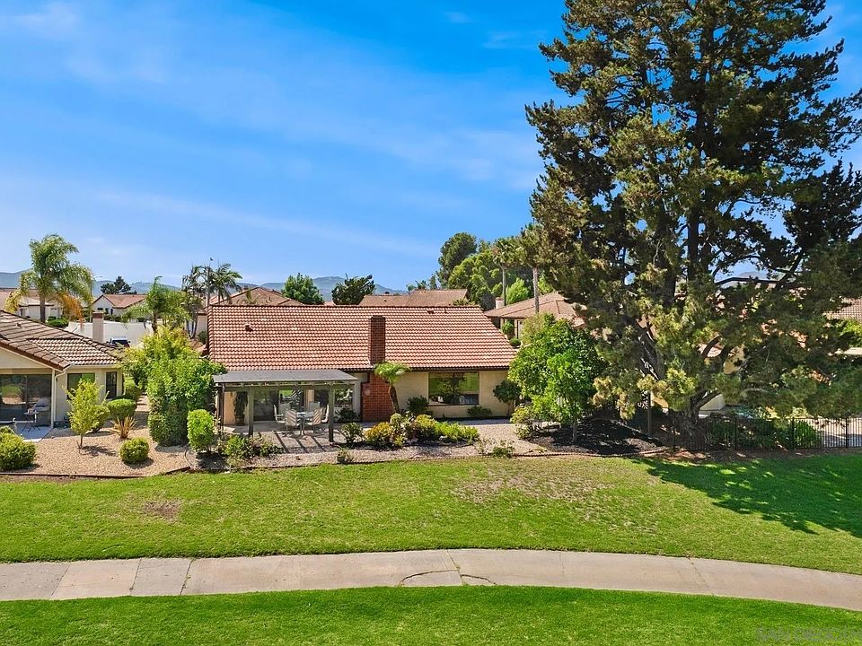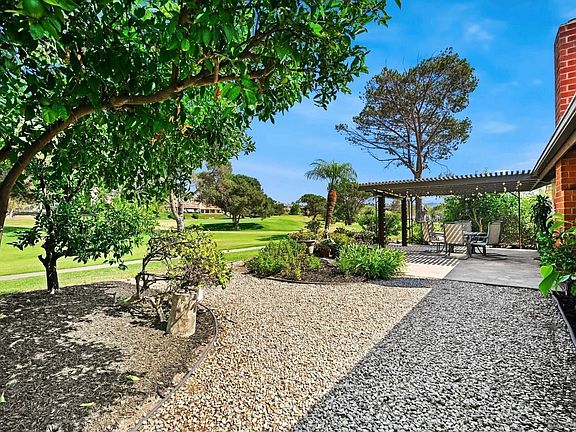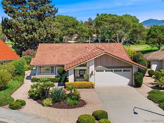 Premium location situated directly on the beautiful Oaks North Golf Course, this single-story home offers panoramic golf course views on a quiet cul-de-sac in the highly desirable 55+ Oaks North neighborhood. Enter and gaze upon soaring high vaulted ceilings, open floor plan with lots of light creates an inviting atmosphere. Recent renovations include a gorgeous open kitchen with quartz countertops, stainless steel Thermador appliances, garden window, bar seating, nook and formal dining areas. A spacious living room with a fireplace is ideal for relaxing or entertaining. Upgrades also include luxury vinyl plank flooring, recessed lighting, HVAC system, water heater and quartz countertops in the primary bathroom, secondary bathroom and hallway cabinet, the primary bathroom also showcases a walk-in shower with stone-look tile and pebble accents. Meander outside to a generous patio with a new aluminum pergola—perfect for relaxing, dining, or entertaining while taking in the serene golf course scenery. The easy care yard has a bounty of fruit trees including Valencia orange, grapefruit and lemon. Additional highlights include an indoor laundry (washer/dryer included) and attached 2-car garage. Residents of Oaks North enjoy access to the Oaks North Community Center offering multiple social and recreation activities including a community pool, tennis courts, pickleball, lawn bowling, exercise room, billiards, library etc. With close proximity to the Rancho Bernardo Inn, Bernardo Winery, golf courses, shopping, and dining, this home truly has it all!