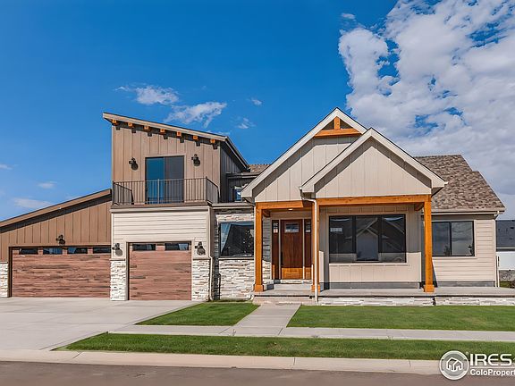 Come home to this 1 1/2 story with 5 car garage, new build. Main story living in Harvest Ridge designed for versatility, function and extra comfort. Walk in to the grand foyer with open stairwell to the finished basement and make your way to the open concept living room with floor-to-ceiling stone gas fireplace. The gorgeous kitchen boasts an oversized island, walk-in pantry, gas stove with hood and extra space for a super-sized dining table. You'll love the private main-level master bedroom suite with plenty of space, oversized windows and ceiling beams. The master bath includes a large walk-in shower and large vanity with ample drawers. A second bedroom, powder room, full bath, laundry room and office are also on the main floor. The loft space can be used as an additional bedroom suite, another office or additional family room. Step out onto the loft balcony to view the beautiful Colorado sunsets. With its own independent entrance and garden level windows, the basement embraces the 'Next Gen' concept with a comfortable, light living space. Perfect for everything from out of town guests to young adults who need their own space at home. Don't forget the oversized 3-car garage (with additional 2 car tandem)