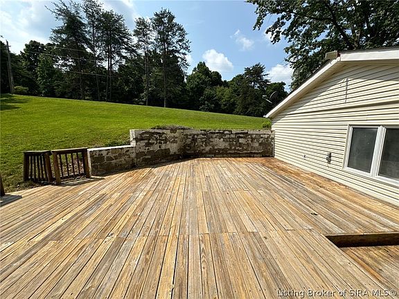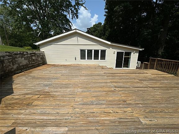 Investors!! Time to sell this property to everyone including investors, flippers, landlords, etc. Once in a lifetime property right here! Zillow value as of 7/26/24 was ($204,200). Tax Assessment was ($184,800) and actual appraised value as of March 2024 was ($165,000). Now it has been cleaned up and is on absolute super sale at only ($134.799). Yes, that's over 69K less than Zillow, over 50K less than past tax assessment and over 30K less than March 2024 appraisal. This is a potential great deal for Flippers, Landlords or Owner Occupiers who are not afraid of work. This potentially very nice Berm property sits on an absolutely beautiful quiet, private lot and has about 1,300 sq ft of living space, 2 beds, 1 bath, kitchen, Living room and several other great unusual rooms as well. You will absolutely love this large custom-built deck and surrounding area as well. I'm unable to say enough about this property. It has so many potential uses for so many buyers. This property sits about a half mile off the main road and will remind you of a lake or Gatlinburg home. Not to mention this fabulous property is in New Albany only about 2 miles from I-64 and I-265, and very close to Floyds Knobs. Don't forget the ginormous awesome detached garage. At this price, the property is sold AS-IS. Buyer to verify any and all information or lack of information including but not limited to lot size, etc Seller is a licensed real estate broker in Kentucky.