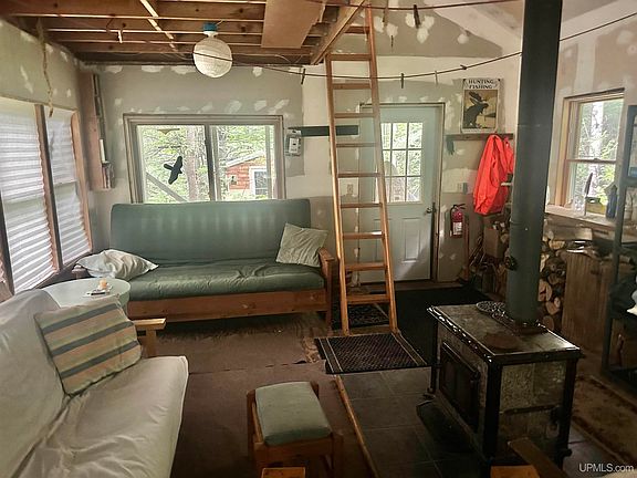Escape to this rustic cabin built in 2000, nestled on 40 private acres, perfect for outdoor enthusiasts. Enjoy peace and privacy with easy access to nearby skiing, ATV trails, and Saxon Harbor. While this cabin does not have any water, sewer or power, it does have a wood stove and a smaller solar panel for off-grid living. There is also an outhouse and a newer sauna. The rustic path to the cabin could be improved for vehicle access. Great for hunting, weekend escapes, or off-grid living. Buyer to verify lot size.