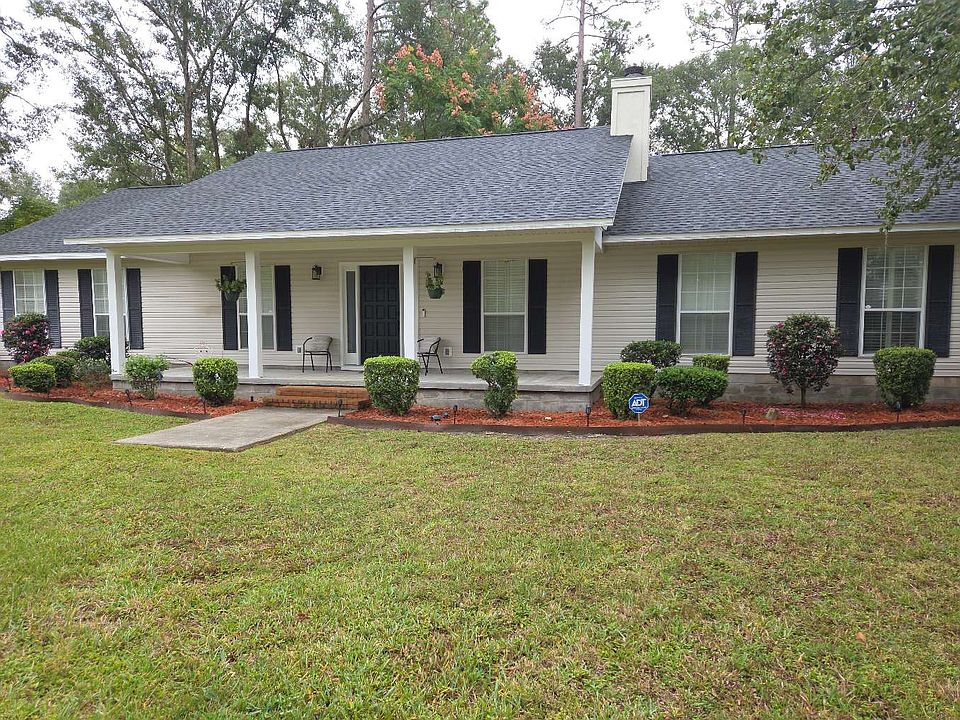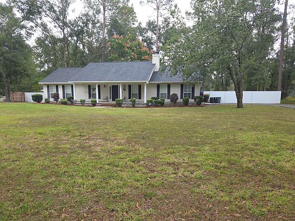 Welcome to this beautifully maintained contemporary home offering a stylish living space on a spacious .82-acre lot in the heart of Live Oak! Perfectly designed for today’s modern lifestyle, this property combines comfort, functionality, and privacy—ideal for anyone looking for a serene yet convenient location close to shopping, dining, and entertainment. From the moment You arrive, the covered front entryway with stately columns gives this home timeless curb appeal and begins to check every box. Step inside to find an amazing interior featuring neutral tones throughout, creating a bright, inviting atmosphere that’s completely move-in ready. Plenty of counter and cabinet space in the bright white kitchen with complete appliance package. The open-concept living room with vaulted ceilings and fireplace flows effortlessly into the dining area and leads to a newly added screened lanai, where you can relax and enjoy the peaceful, tree-shaded backyard. The on-suite bathroom offers a touch of luxury with its brand-new walk-in shower, while the home’s low-maintenance vinyl siding, newer roof, and brand-new water heater provide confidence and ease of ownership for years to come. Outdoors, the modern metal fencing, and detached storage shed is perfect for tools or hobby space. Park inside on the freshly coated garage floor. Unwind in the included screened gazebo with hot tub. Be sure to check out the 2-story wooden playhouse and firepit for hours of backyard fun!