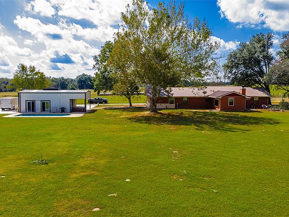 Beautiful countryside setting surrounded by large acreage tracts and impressive ranches. This updated home sits on 12 acres and offers two inviting living areas, one featuring a charming stone fireplace. The large country kitchen opens seamlessly to both living spaces, creating the perfect flow for family and friends to gather. The spacious primary suite captures peaceful countryside views and includes a luxurious bath with soaking tub, walk in shower, and an expansive closet. A 900 sq. ft. metal shop includes a 500 sq. ft. finished living area with a half bath - ideal as a bunk room, guest quarters, or entertainment space- overlooking a sparkling swimming pool.