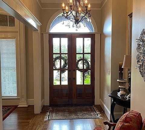 Custom built 3,444 sf 1.5 story home in Maxwell Meadows. 4 bedrooms 2 1/2 baths with upstairs bonus room, and 2 car garage. Solid hardwood flooring throughout all areas with travertine in bathrooms & laundry room. Heavy custom crown molding in all rooms. 10-16' trey ceilings, custom cabinets with granite countertops, stainless steel appliances, wood burning fire place with gas starter, Vacu-flo system. Other features include: In-ground gunite salt water pool with natural gas fire bowls, screened in porch with fireplace & sprinkler system.