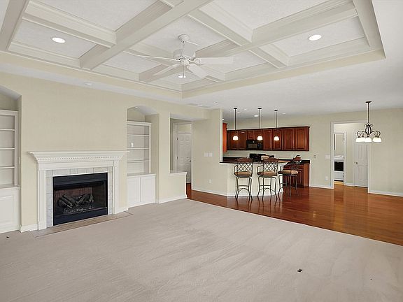 Gas fireplaceCovered front porchCovered sun roomPrimary bedroom suiteCustom built-insCoffered ceilingsGranite countertops