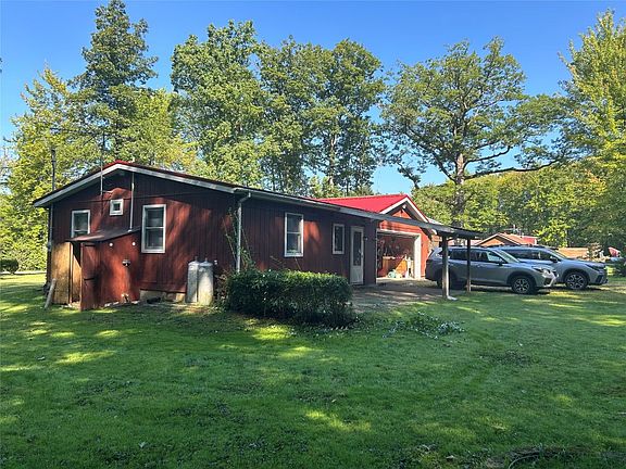 Dreams of living near Pymatuning Lake come true in this ranch style home! Located 0.6 miles from the Espyville Marina! Situated on 3 lots, this home boasts amazing outdoor living space with a covered back patio and front deck across the road from Pymatuning Lake. Ample storage abounds in the attached 22'x28' 2-car garage and 12'x28' shed; great for storing all your lake gear! The home features a semi-open kitchen and living space as well as 2 bedrooms and a full bathroom. Turn the key and start making memories by the lake today!