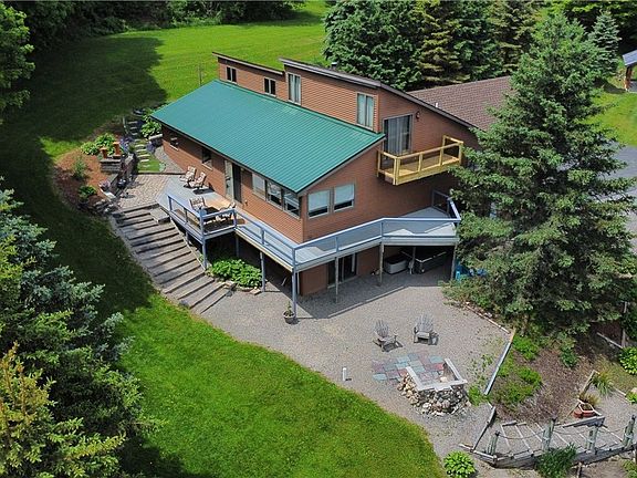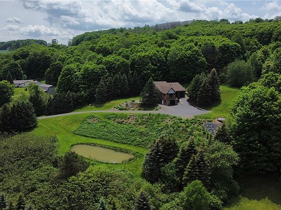 The possibilities are endless in this exceptional home set on 7.72 acres in the Tully School District! The spacious, open-concept layout features vaulted ceilings, a bright kitchen with a large island & stainless steel appliances, a formal dining area, a cozy living room, large mudroom entryway & large windows that offer private views from every room in the house! The versatile bedrooms cater to various needs: two on the first floor, one potentially serving as a primary bedroom, while the other boasts a large loft, perfect for a hobby/playroom or for extra storage! Upstairs, one bedroom currently functions as an art studio, which could be combined with the adjacent bedroom to create a vast primary suite! The finished walkout basement includes a wet bar, pool table, lounge area, laundry room & half bath, offering ample space for entertainment! Outside enjoy the wraparound deck, patio, fire pit, pavilion & deck overlooking the pond & hillside! This property is a paradise for outdoor enthusiasts, featuring a pond, hiking trails & wooded areas. Additionally, there are two separate garage spaces & a pavilion that can easily be converted into a pole barn!Offer Deadline Saturday 5/25 @7pm