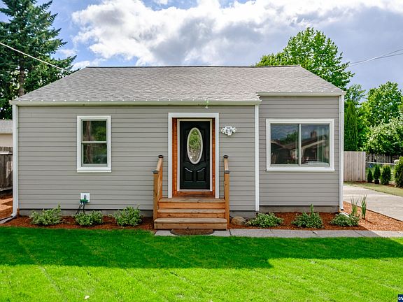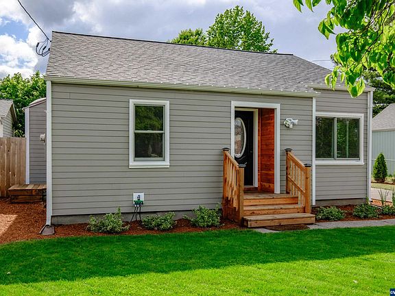 Fresh remodel in sought after Lebanon, OR. This home feels like new construction with the charm of yesteryear. Remodel included new roof, siding, paint, bathroom, kitchen, flooring, tile, carpet, paint, appliances, fence, and landscaping. Large lot with full fenced back yard for animals and entertaining, spacious covered patio! Very comfortable home with heat pump for AC and heating. Detached garage for storage or hobbies. This home is turnkey and ready for its next owner. Will not last!