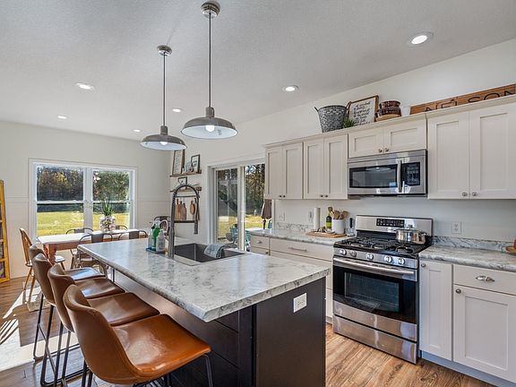 Country Property just under 3 acres in Warsaw now available! Home was built in 2013 and offers 4 bedrooms an 2.5 baths in this modern farmhouse style home. Oversized porch with sidewalks to it from the driveway will provide the perfect entrance for guests. The vinyl plank flooring looks beautiful and is the perfect flooring choice for country living. Built-in shelving and cabinetry surround the fireplace in the great room. There is an open arched doorway connecting the kitchen to the great room seamlessly. The built ins around the fireplace give it a modern farmhouse feel and the beautiful vinyl plank flooring through out the main level is beautiful and durable for country living. The kitchen is complete with all the appliances and a great island to center your conversation around during meal prep. Oversized windows provide wonderful lighting through out this home. The dining area looks out over the back yard. There is a modern and wonderfully decorated mud room turned walk in pantry that you will be certain to appreciate. A powder room is tucked in under the stairs for guests. The primary suite completest the main level with a generous sized bedroom as well as a walk in closet and bathroom with double vanity and shower. Upstairs enjoy 3 bedrooms - one being larger and a bonus room area as well as a full bathroom with double vanities as well. There is even 1320 sq ft of unfinished living space in the lower level. There is an egress window already in place- finish this out for additional living space if needed or use it for the storage you may need! Outside- you have room to roam here-plenty of room to add a pole building if you need it! Drive way is currently shared, but an easement does currently exist to the road that if a private drive way was needed- there is space to put this in. Seller will have a driveway agreement in place prior to closing. Enjoy living close to everything but being perched on a great elevation looking out over the land to the east. Schedule your private tour of this property today!