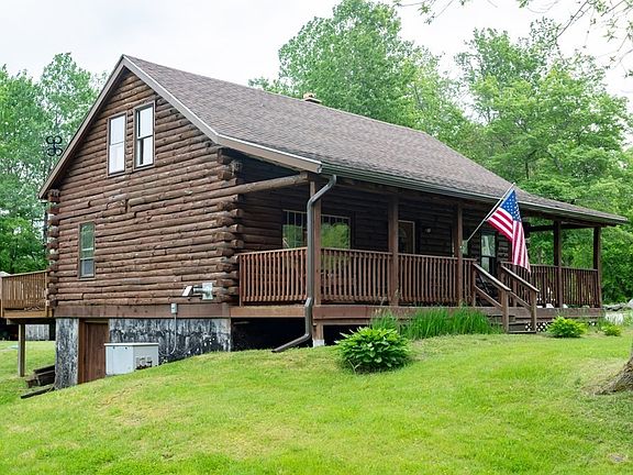 A one of a kind well maintained log home located on a 1.94 flat open grassed acre lot. This home features 6 Rooms, 3 Bedrooms, 2 bathrooms, wood floors throughout, laundry in the basement. Enjoy relaxing on the front covered porch or hang out on the back deck.There is a detatched 1 car garage along with an additional car port for extra equipment. This home has three forms of heat. With almost 2 acres of flat open grassed land offers room to roam. There are three types of heating in the log home, Oil, Wood and Pellets. Recent whole house generator powered by propane. This is a must see log home! Video camera and audio on property.