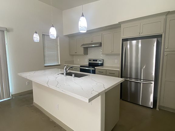 Exclusive Features This 2 bedroom, 2 bath Townhome has a Center kitchen Island with exotic quartz and granite countertops ~ Subway tile back-splash ~ Posh Pendant lighting and thoughtfully placed motion activated lighting ~ Lots of natural light ~ ADA friendly with generous hall and door widths, walk or roll in showers and grab bars ~ Stainless appliances include; glass cook-top range, dishwasher, refrigerator, washer and dryer ~ Window Coverings ~ Covered Veranda with ceiling fan. It also has a one car garage!