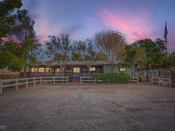 **Set back a ways from the main road this beautiful 2 Acre Equestrian Property peacefully nestled in the Red Rock Conservation Area with 360 degree mountain views and few neighbors. 1,725 sq ft home 3 bedroom 2 bathroom, 8 stall barn w/tack room, automatic waterers & runs. Many additional stalls/pens separate from the barn & plenty of room for a large arena. Private well w/large storage tank & pumphouse. This incredible single story has it all. Remodeled kitchen with custom cabinets, granite countertops, stone backsplash, stainless steel appliances & mountain views from the kitchen sink! LVP flooring throughout. Upgraded bathrooms with custom countertops and custom showers. Oversized laundry room/mud room with exterior entry door. Cozy wood pellet furnace for cold winter nights. Front & rear deck with stunning views. Outdoor wet bar cook space with counter top, seating and custom firepit. BEAUTIFUL LUSH & GREEN grass back yard with trees & tree house! This is truly living in nature!!**