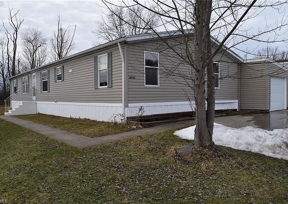 Spacious 3 Bedroom & 2 Full Bath double wide Mobile Home in Chardon School District! 1998 - 26x66 Redman Park model has over 1700 sqft of living space with open floor plan & newer wood laminate flooring throughout. Nice size Living Room, Family Room, Dining Room, Eat-in Kitchen with abundance of cabinets & counter space and all appliances are included. Large Master Bedroom with double closets & private full bath with garden tub. Washer & dryer stay with home and Laundry Room has access to 1+car attached garage. Large concrete apron for extra parking. New front steps. Storage shed. Community Park includes use of Club House, gazebo, pavilion & common green space. Close to schools, park, pool, shopping & Geauga Parks Mountain Run trails. Just minutes east of Chardon Square!