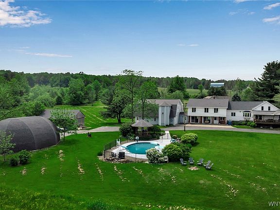 Escape to the rolling hills of South Wales, NY and enjoy country living in this roomy 3,900 square foot home on 12.7 acres. The front part of this home has a modern farmhouse industrial feel with a newly remodeled kitchen opening to the dining room, sitting area, loft and both enclosed and covered front porches. There are three bedrooms and a full bathroom upstairs and on the lower level, a large living room with a fireplace, another full bath and laundry room. The addition in the back includes a potential in law apartment with a full bath and laundry room, a large bonus room on the second floor with it's own full bathroom and an attached two car garage. The two outbuildings; a 30" x 34" quonset style building once hosted a small wedding reception and is currently used for storage and a workshop, and a 24" x 35" pole barn. There are so many possible scenarios for this unique property; home business, workshops, man cave, raising animals, game room, in law or rental potential. Not to mention enjoying the beautiful country views with the changing seasons, swimming, relaxing in the hot tub, hosting parties, hiking, hunting, and morning coffee on the porch. "Square footage measured by sellers"