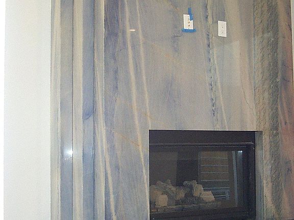 One of only two dwellings in a modern four-level building, the home features tall ceilings, large bay windows, and thoughtfully selected finishes throughout. The Italian kitchen includes blue-granite countertops, stainless-steel appliances, and a modern wine fridge. The living room opens directly to a private rear courtyard and showcases a striking floor-to-ceiling blue-granite gas fireplace. A dining area faces north with partial Golden Gate Bridge and waterfront outlooks.