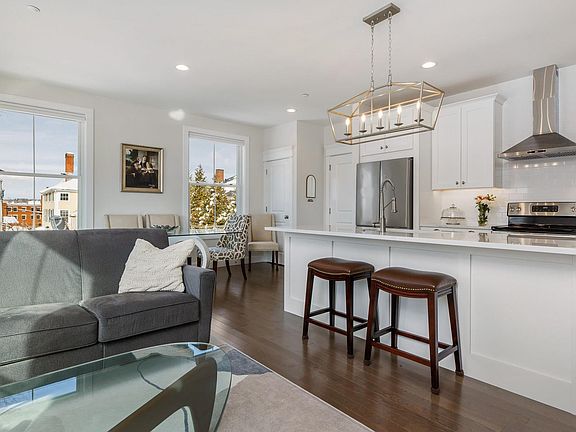 Have you dreamed of living in the heart of downtown Exeter? Would you enjoy the extensive walkability this well preserved downtown offers? To live amidst your favorite coffee shops, parks, restaurants, schools, boutiques and art spaces. 12R Front Street Unit 303 is a rare and beautiful offering. The sun graces this top floor home throughout the day providing warm relaxation in the light and bright living space. The panoramic views of the historic downtown are magnificent, while the elevation of the third floor unit gives a feeling of being away from it all. 2.5 years young, Unit 303 offers modern finishes and the increased efficiency of newness. Ideal for entertaining the generous quartz kitchen island shines as the centerpiece for the main living space. Quality hardwood and tile floors. Impressive 9ft ceilings. Huge windows. Stylish Fixtures. Charming barn door accent. Accessed via stairs or elevator in secure building. One parking space per unit. 2 rooms for potential sleeping quarters with a 2 adult person maximum occupancy. A very short walk to prestigious Philips Exeter Academy. Conveniently located close to major routes and within the SAU 16 School System. The popular Downeaster train is nearby for travel to Boston and Portland for business or fun. Find out why so many love to call downtown Exeter, NH home!
