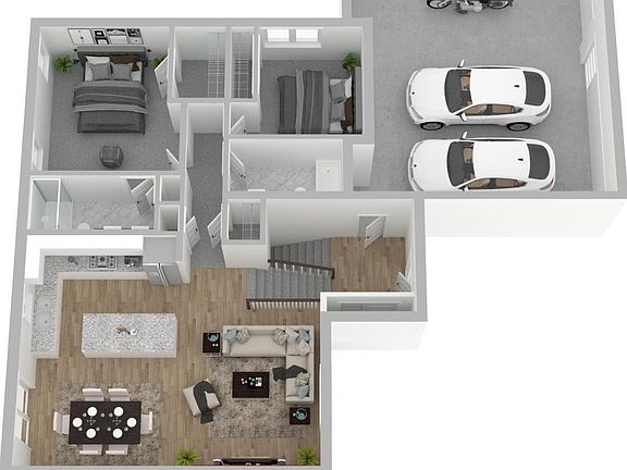 Vaulted ceilingOpen floor planUpgraded stainless steel appliancesFinished lower levelHuge family roomDark cabinetsQuartz countertops