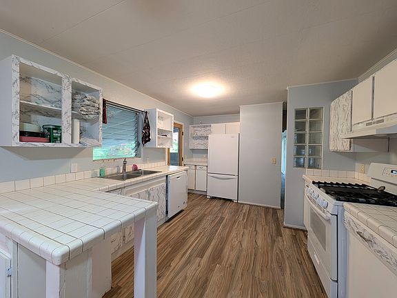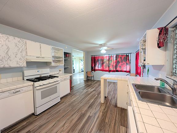 After plugging in your car, step inside to a cute kitchen with lots of cupboard space, a gas stove and double sink looking out to the beautiful back yard. The kitchen is open to the dining and living room each with ceiling fans. New flooring has been installed throughout.