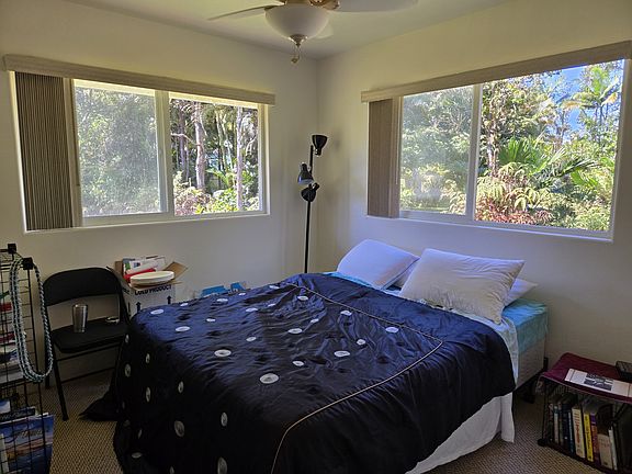 Lowest priced single family home in Hilo with 1 acre! Come see this charming 2 bedroom, 2 bath single level home in Leilani Estates. Built in 2010 and well maintained by the original owner. Enjoy a peaceful one acre lot with room to garden or expand. Convenient public bus stop just half a block away and mailbox located right in front. New washer and dryer installed, making it move-in ready. An excellent opportunity for first-time buyers or investors seeking value and space in a quiet neighborhood.