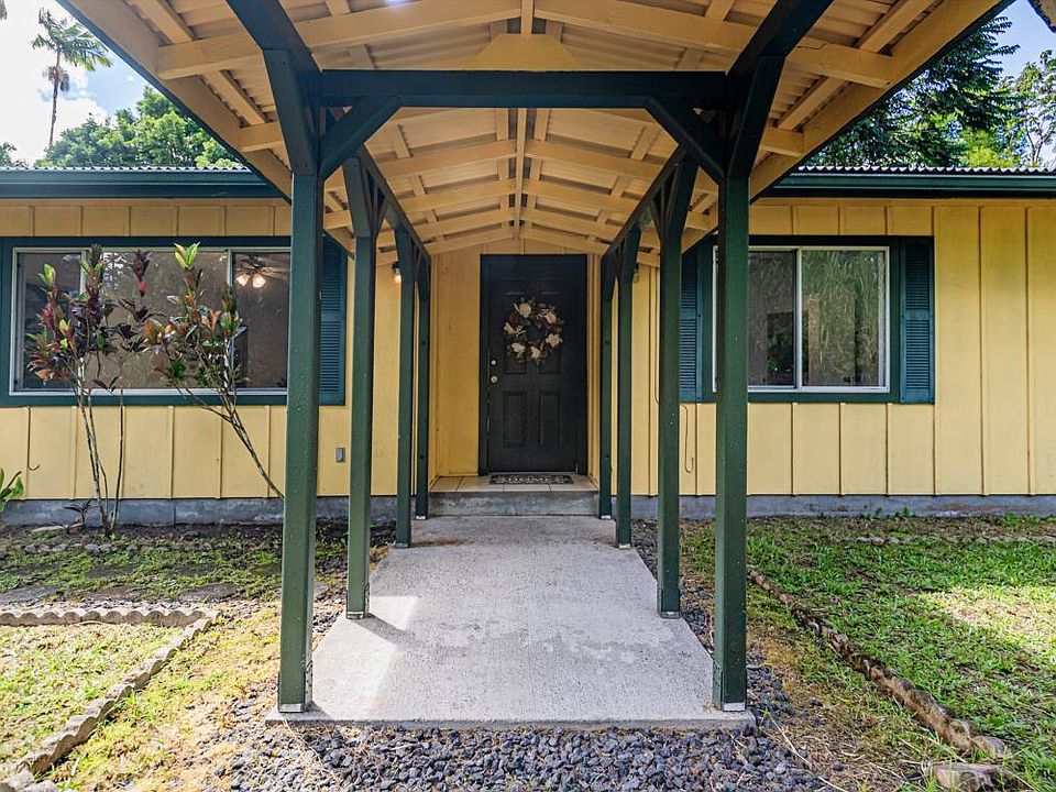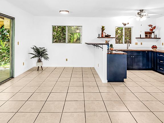 Tucked away on beautiful Hawaiian grounds, this refreshed 3-bedroom, 2-bath home blends modern updates with the natural charm of island living.<br><br>Step inside to a light-filled open floor plan featuring tiled floors and freshly painted white walls that create an airy, uplifting vibe. The newly updated kitchen shines with navy blue cabinetry, wood countertops, and open shelving — perfectly framed by lush tropical greenery just outside your windows. The seamless flow between kitchen, dining, and living areas makes it easy to gather with family and friends, embracing the relaxed spirit of Hawaii.<br><br>Both bathrooms have been completely remodeled with new vanities, stylish fixtures, contemporary tub/shower surrounds, and modern finishes. Each bedroom offers a peaceful retreat with ceiling fans, generous closet space, and garden views that bring nature right to your doorstep.<br><br>The home also includes an indoor laundry closet for convenience and a flexible covered area that can serve as either a lanai for outdoor relaxation or a carport for shaded parking and projects — the choice is yours.<br><br>Outside, the lush tropical landscaping sets the tone for true island living. Mature trees and flowering plants surround you with natural beauty and privacy. The spacious yard offers room to garden, play, or simply unwind and soak up the aloha spirit in your own private paradise.<br><br>What Makes This Home Special:<br><br>3 bedrooms / 2 full baths<br><br>Fully remodeled bathrooms<br><br>Updated kitchen with navy cabinets, wood countertops & open shelving<br><br>Freshly painted interior with tiled floors<br><br>Indoor laundry closet for convenience<br><br>Versatile covered space: lanai or carport<br><br>Private yard with tropical plants & mature trees<br><br>This move-in-ready home offers the perfect balance of modern comfort and relaxed island living.<br><br>Come experience the aloha for yourself!