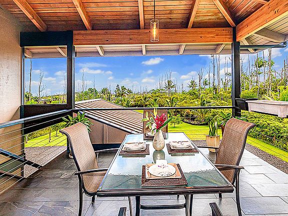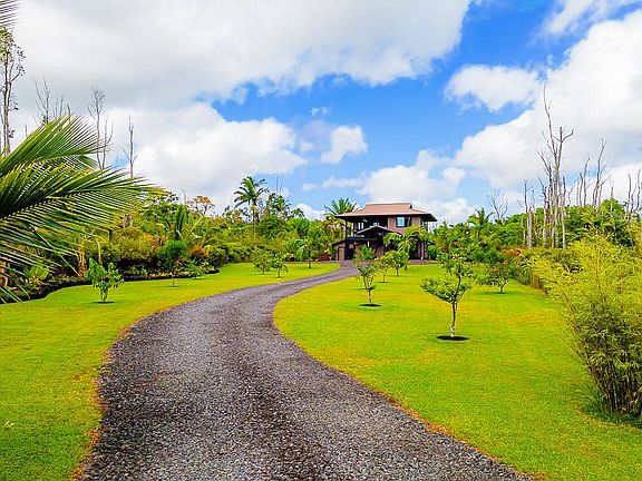 Beautiful, custom designed and quality-built residence nestled into a lush, 1 acre tropical garden, offering a place of unparalleled beauty and intentional peacefulness. Located in Leilani Estates on the Eastside of the Big Island, this 2 bedroom plus office, 2 1/2 bathroom home, has over 2100 sqft under roof.