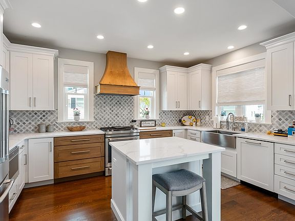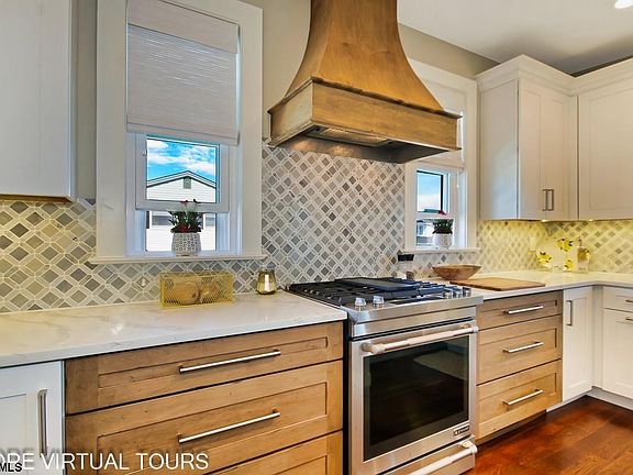 Upgraded kitchenCathedral ceilingsCorner propertyJenn air appliancesWood range hoodRain head showerPatio furniture