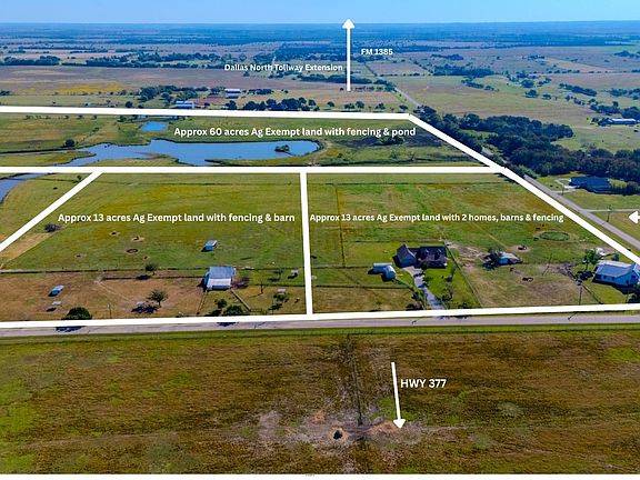 The property offers wide road frontage, a creek along the eastern boundary, and open pastureland ideal for future residential, commercial, or mixed-use projects. Located just minutes from Highway 377, FM 1385, and the Dallas North Tollway Extension, this land is positioned in the heart of the Golden Corridor connecting Pilot Point, Aubrey, and Celina.